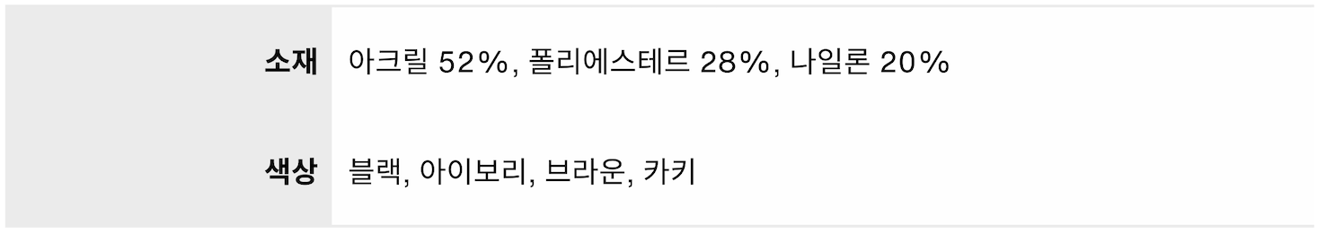 아크릴 52%, 폴리에스테르 28%, 나일론 20% 혼방으로 가볍고 부드러운 착용감입니당
