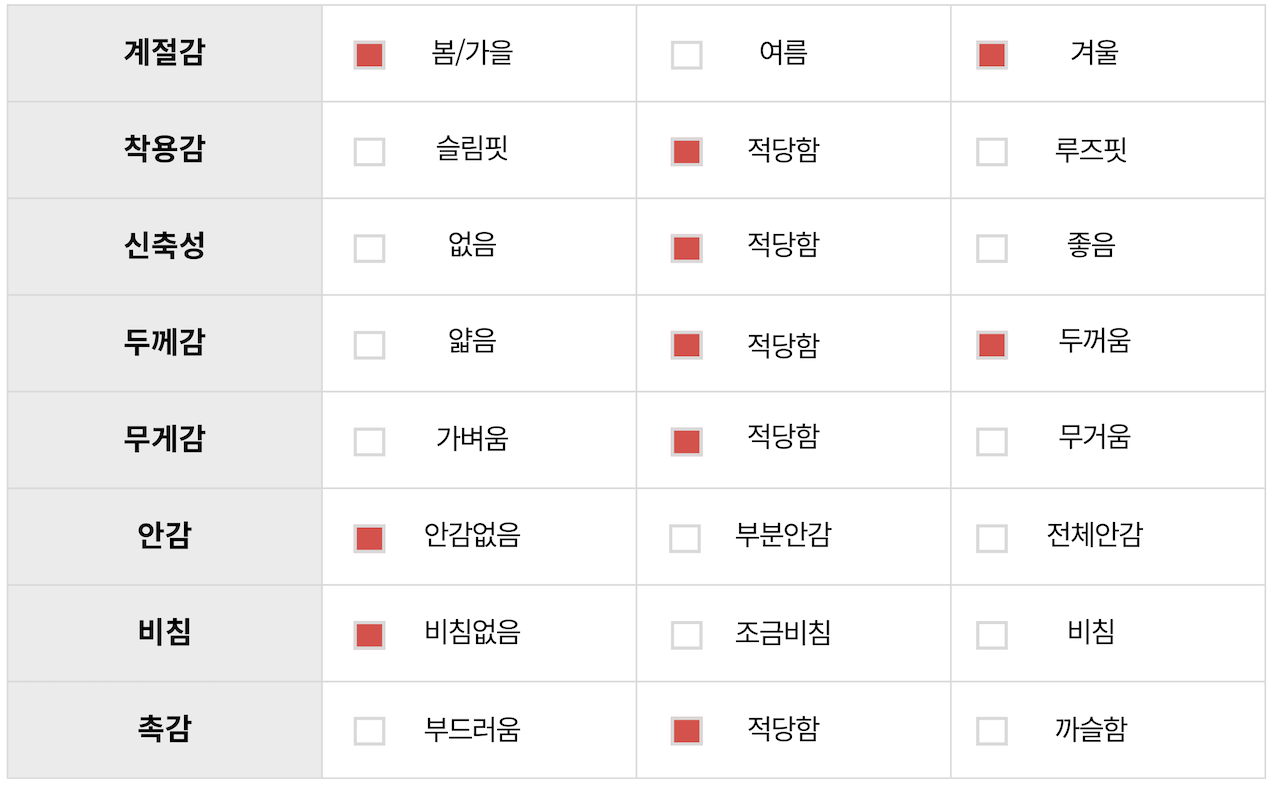 적당한 두께감으로 봄, 가을, 겨울 착용 가능하며,