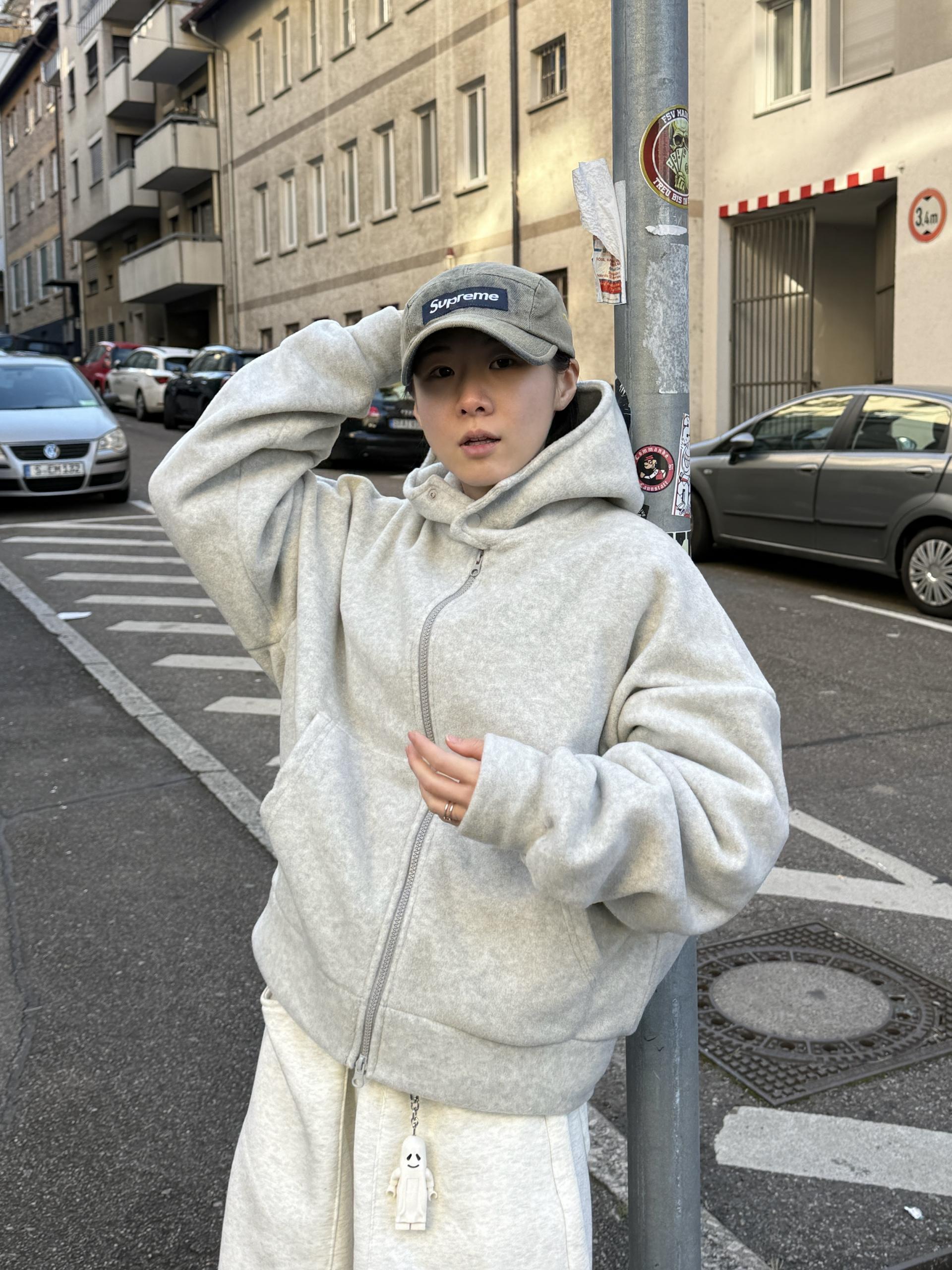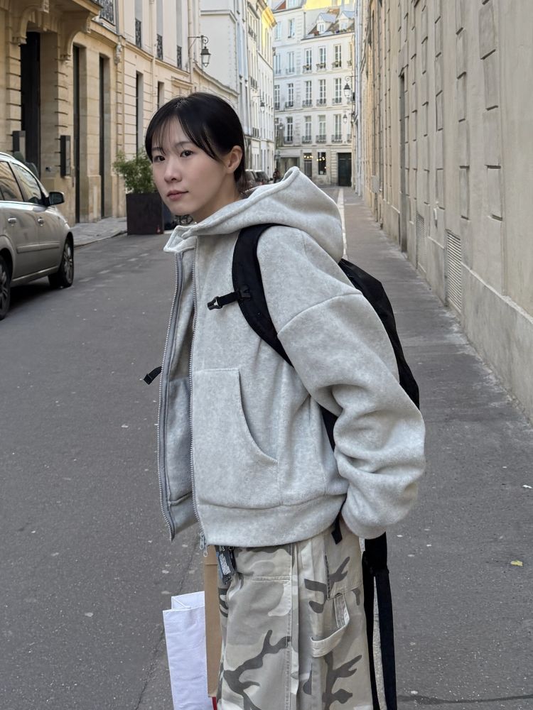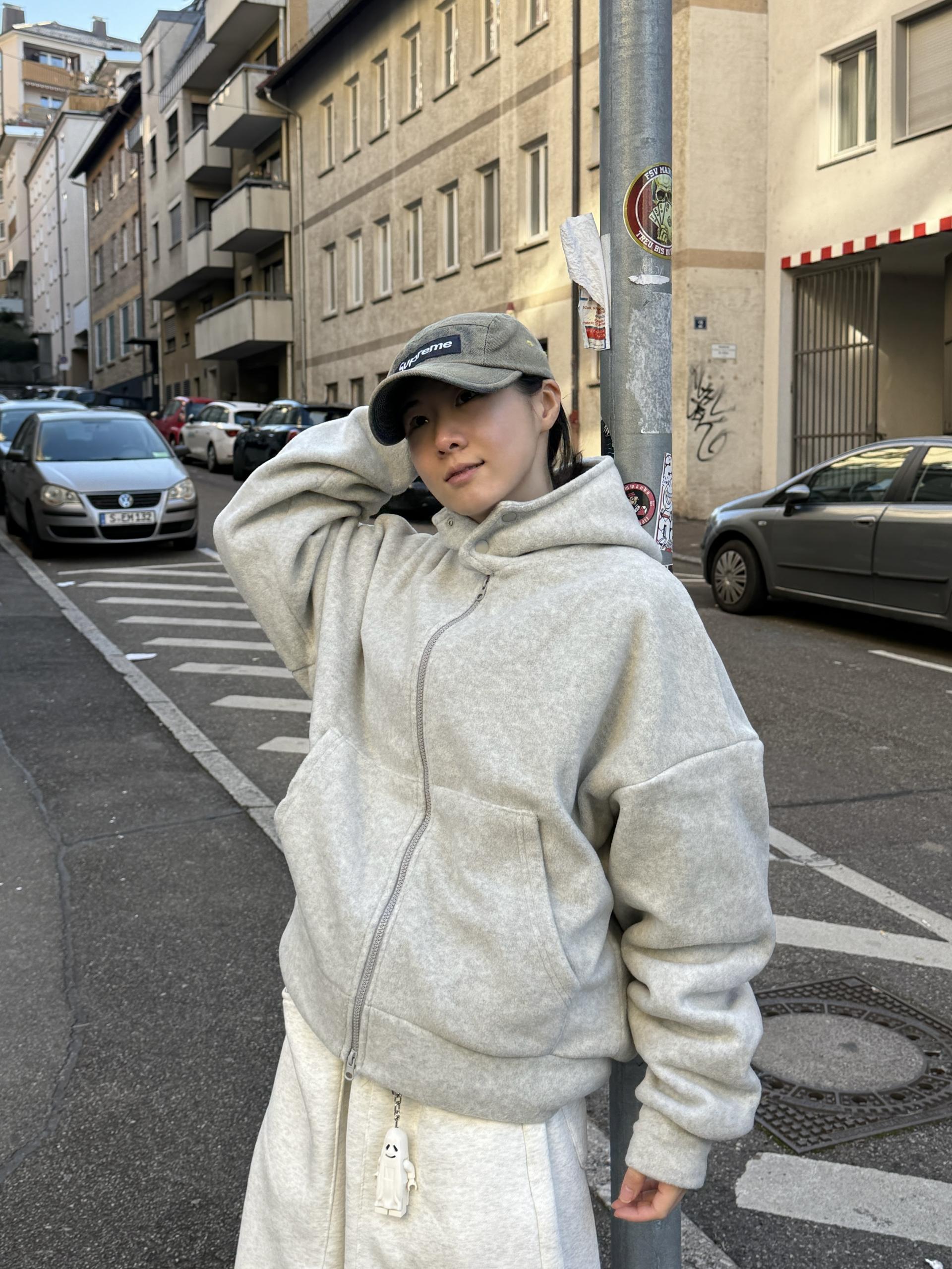 부드러운 후리스 원단으로 제작된 크롭 후드 집업이에요!!