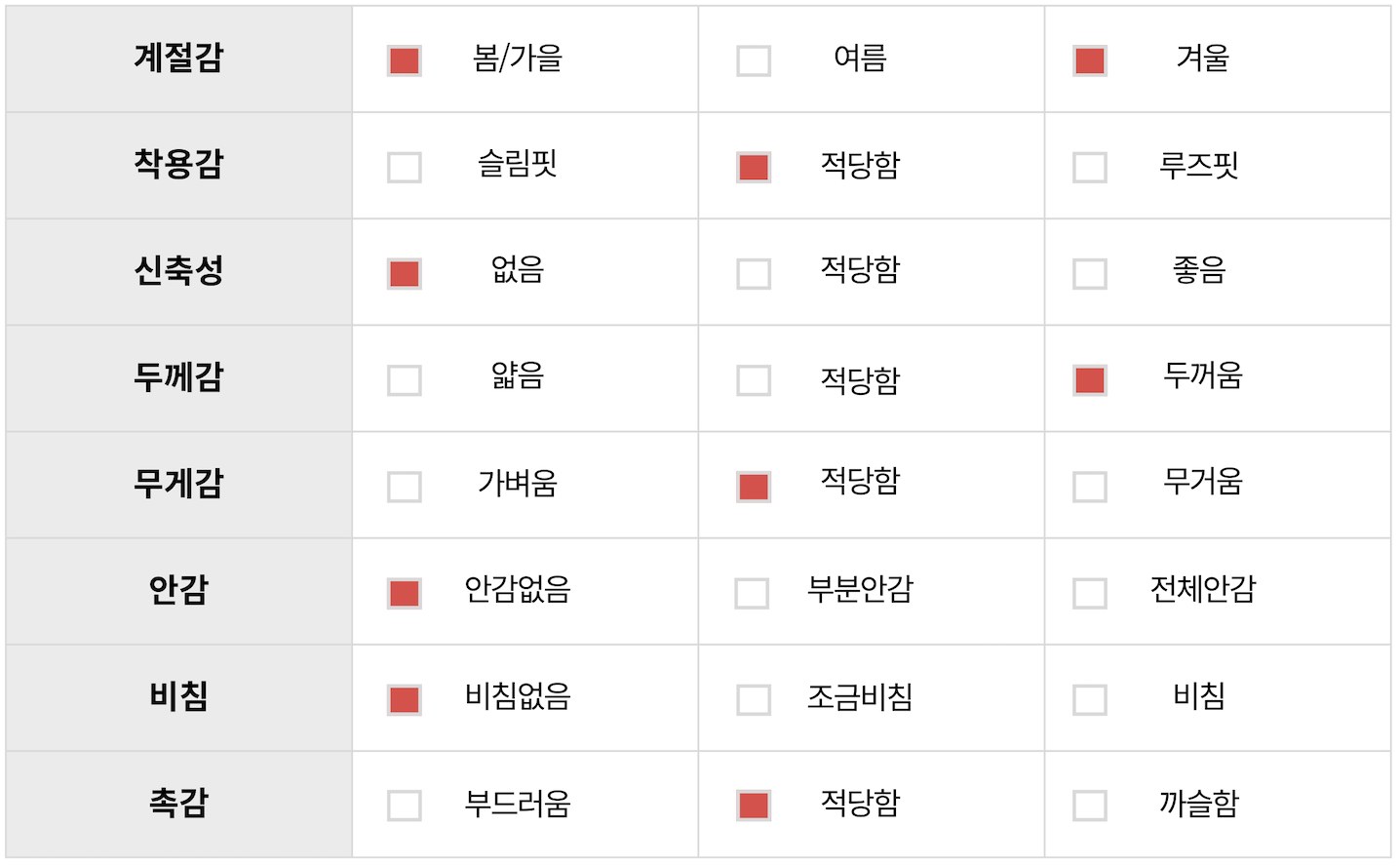 사이즈 정보