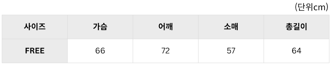 - 사이즈 측정법에 따라 1~3cm 오차가 있을 수 있습니다.