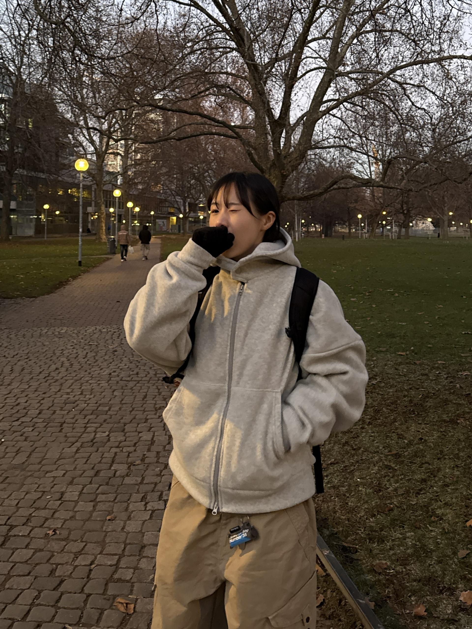 폴리 100% 소재로 가볍고 따뜻해서 데일리로 편하게 입기 좋아요.