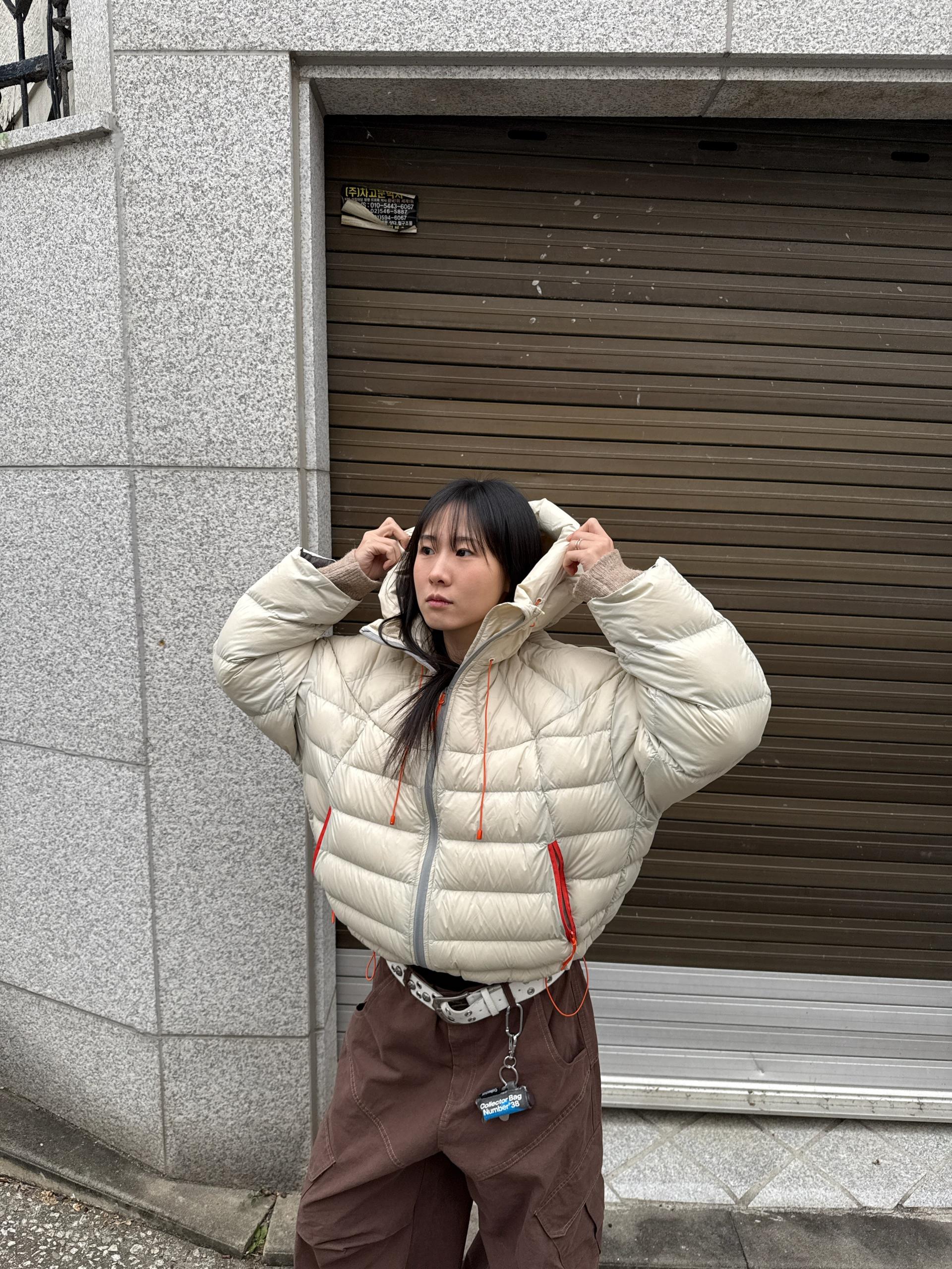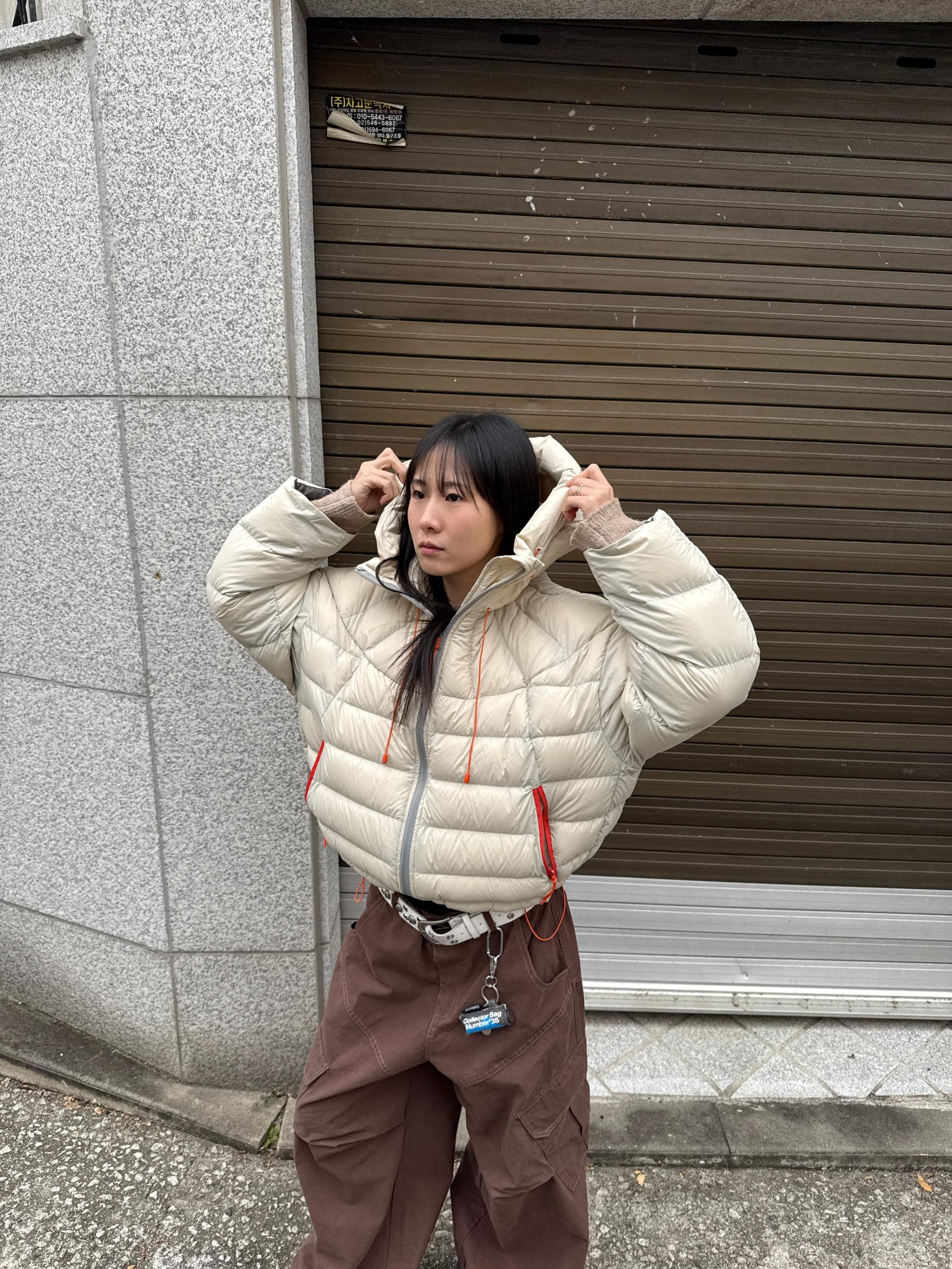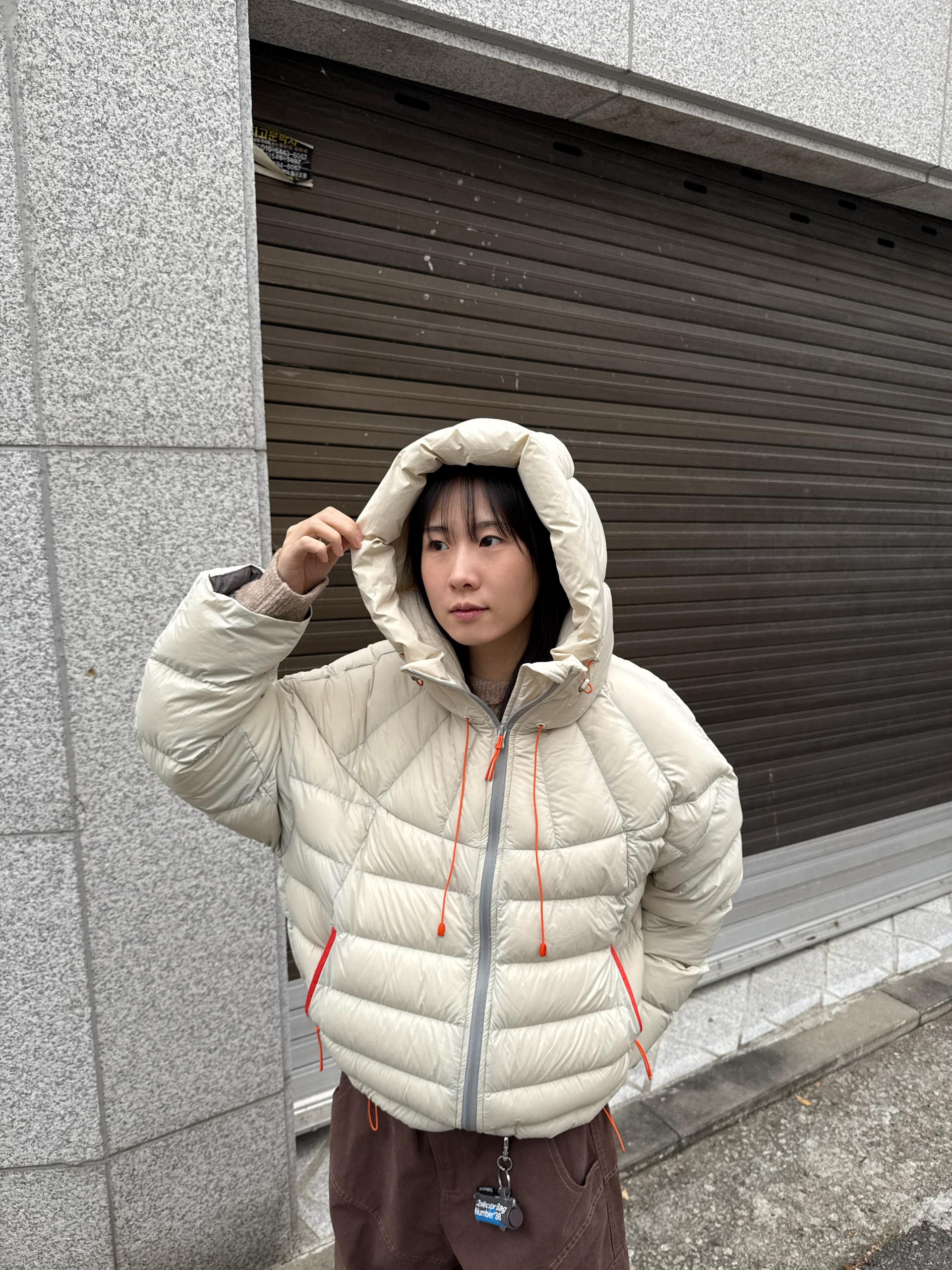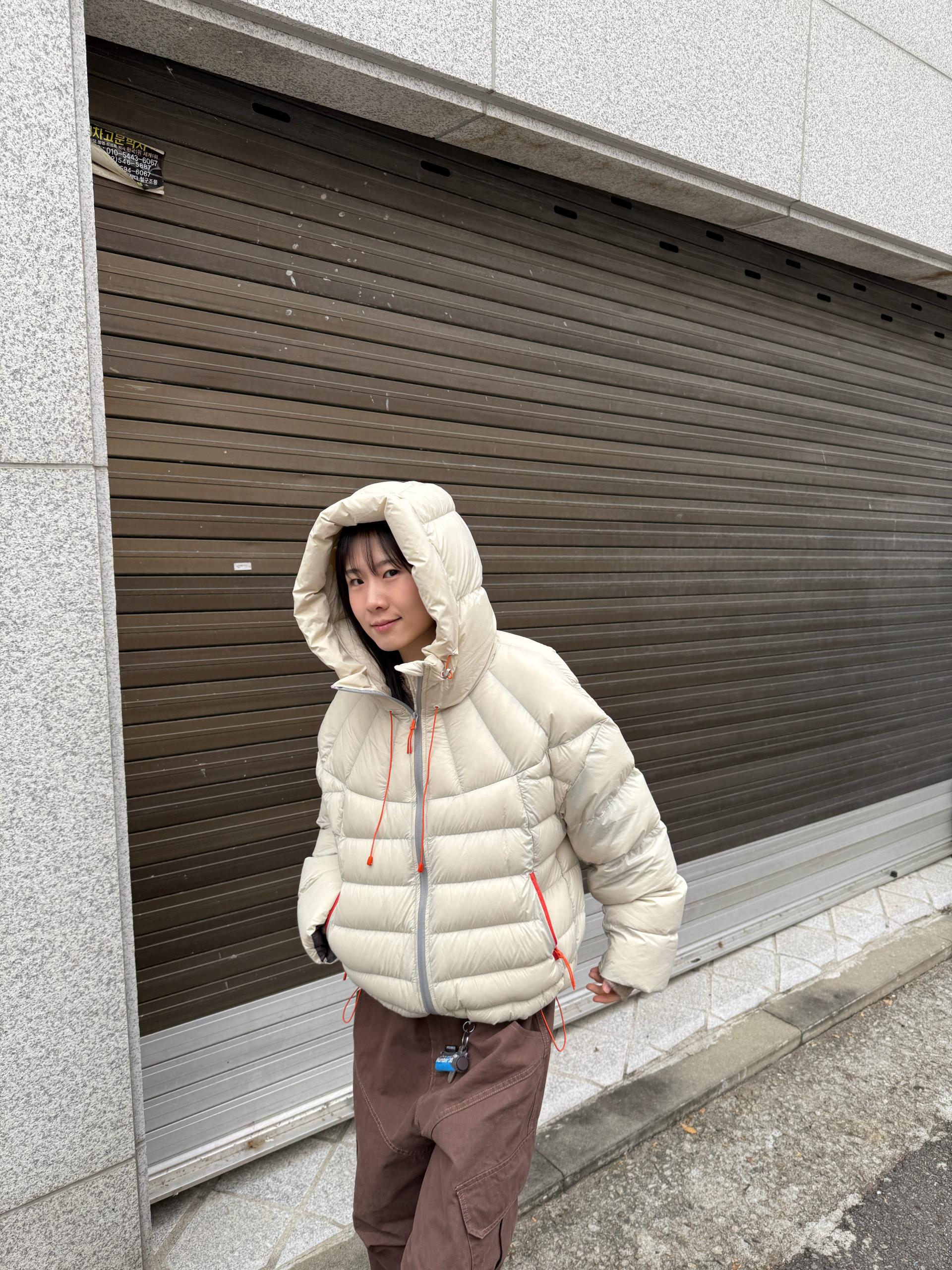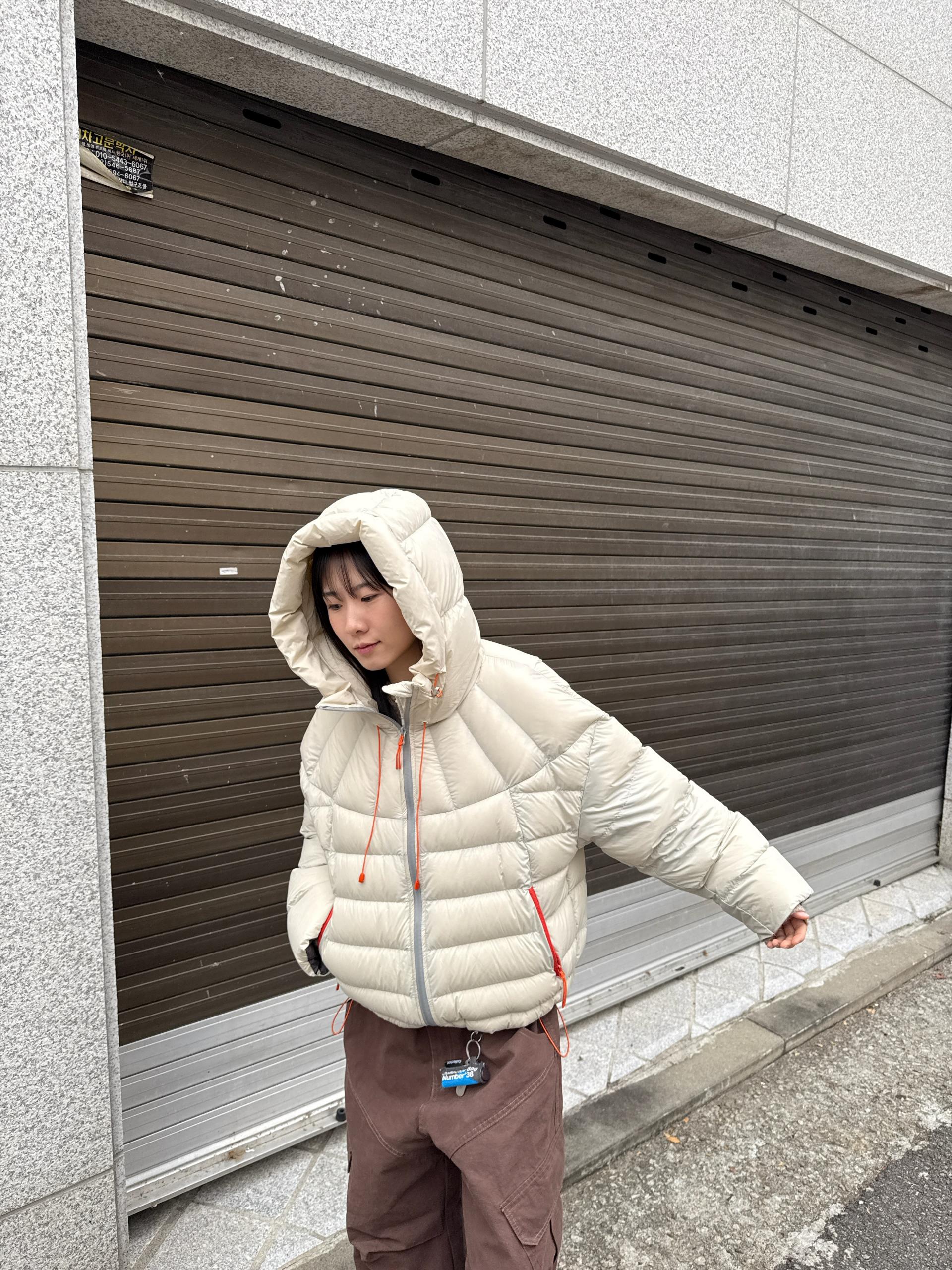 볼륨감 있게 올라오는 후드 실루엣이 매력적인 덕다운 패딩이에요!!