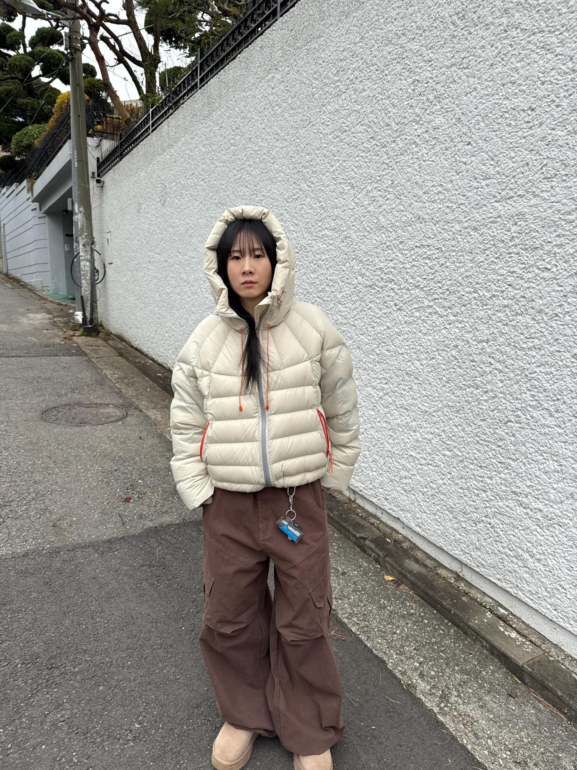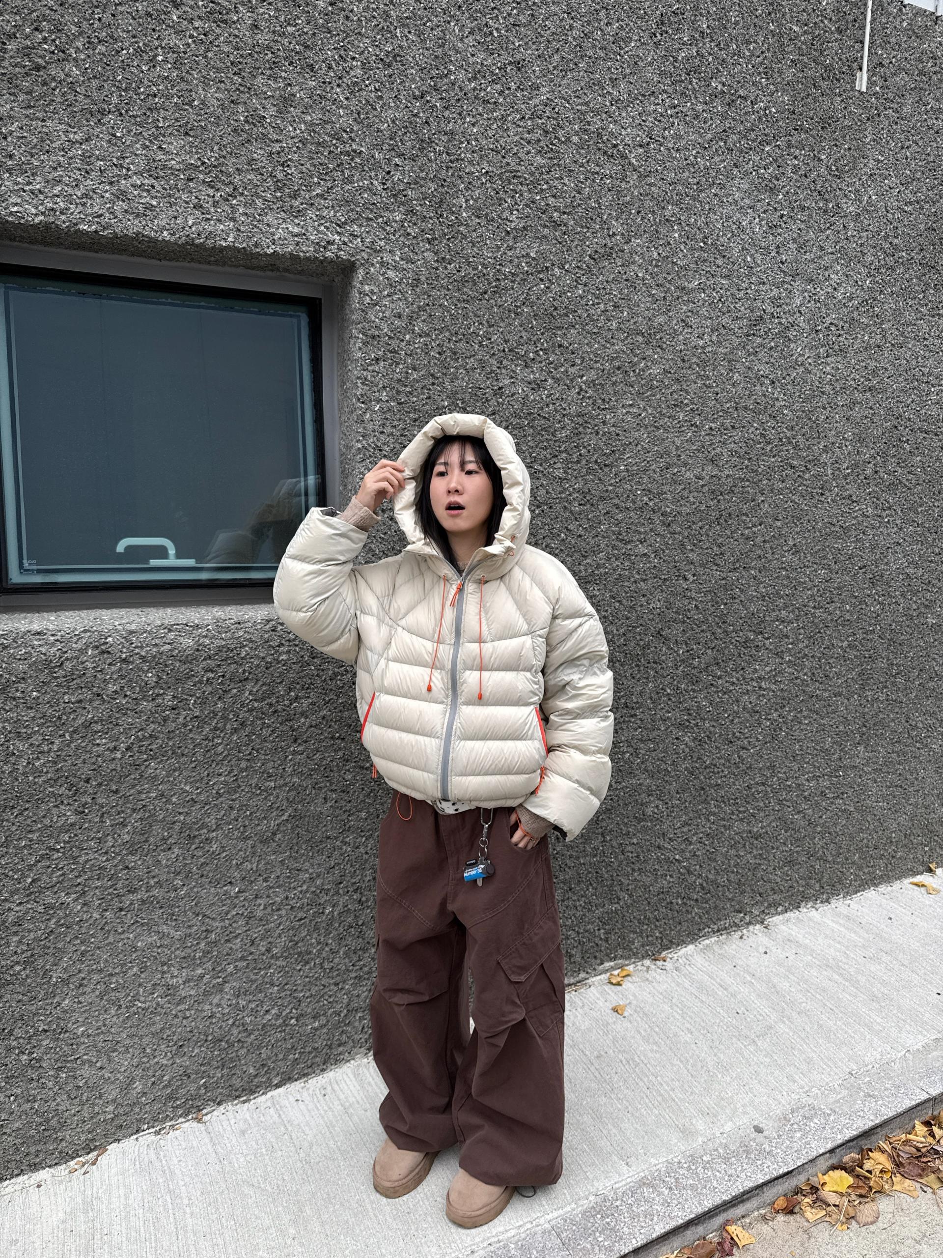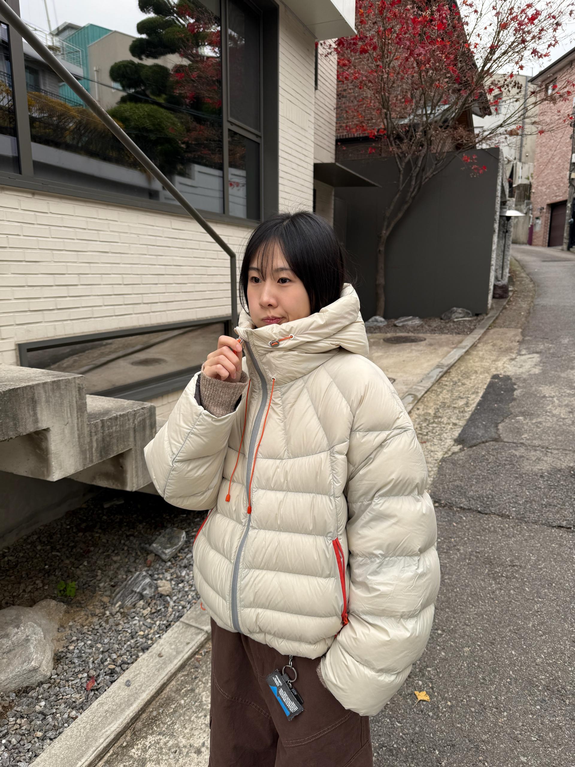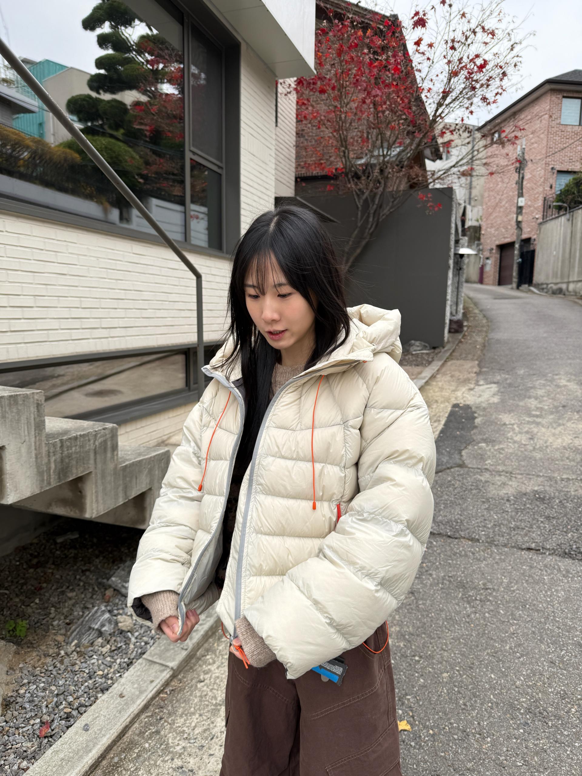 볼륨감 있게 올라오는 후드 실루엣이 매력적인 덕다운 패딩이에요!!