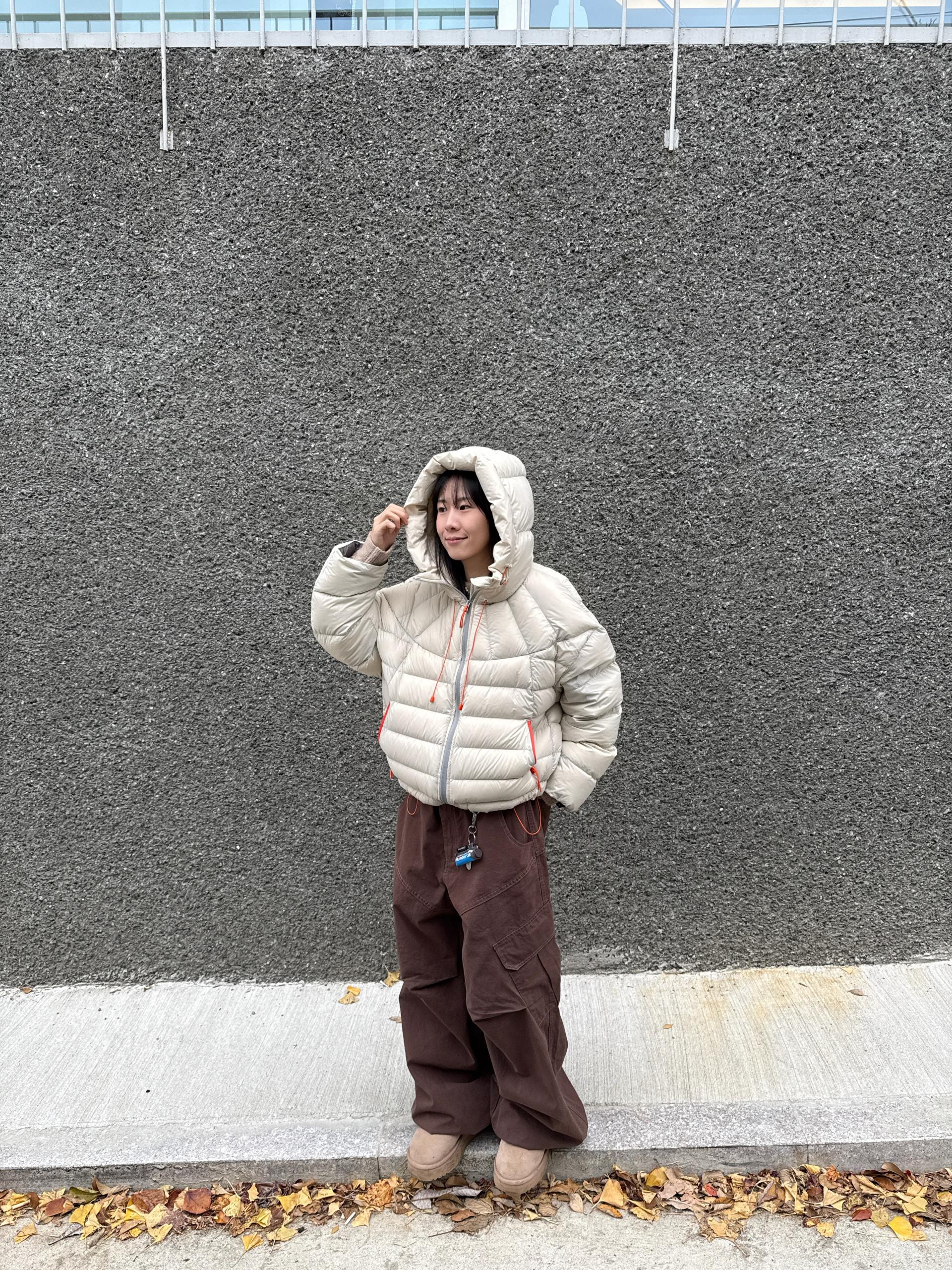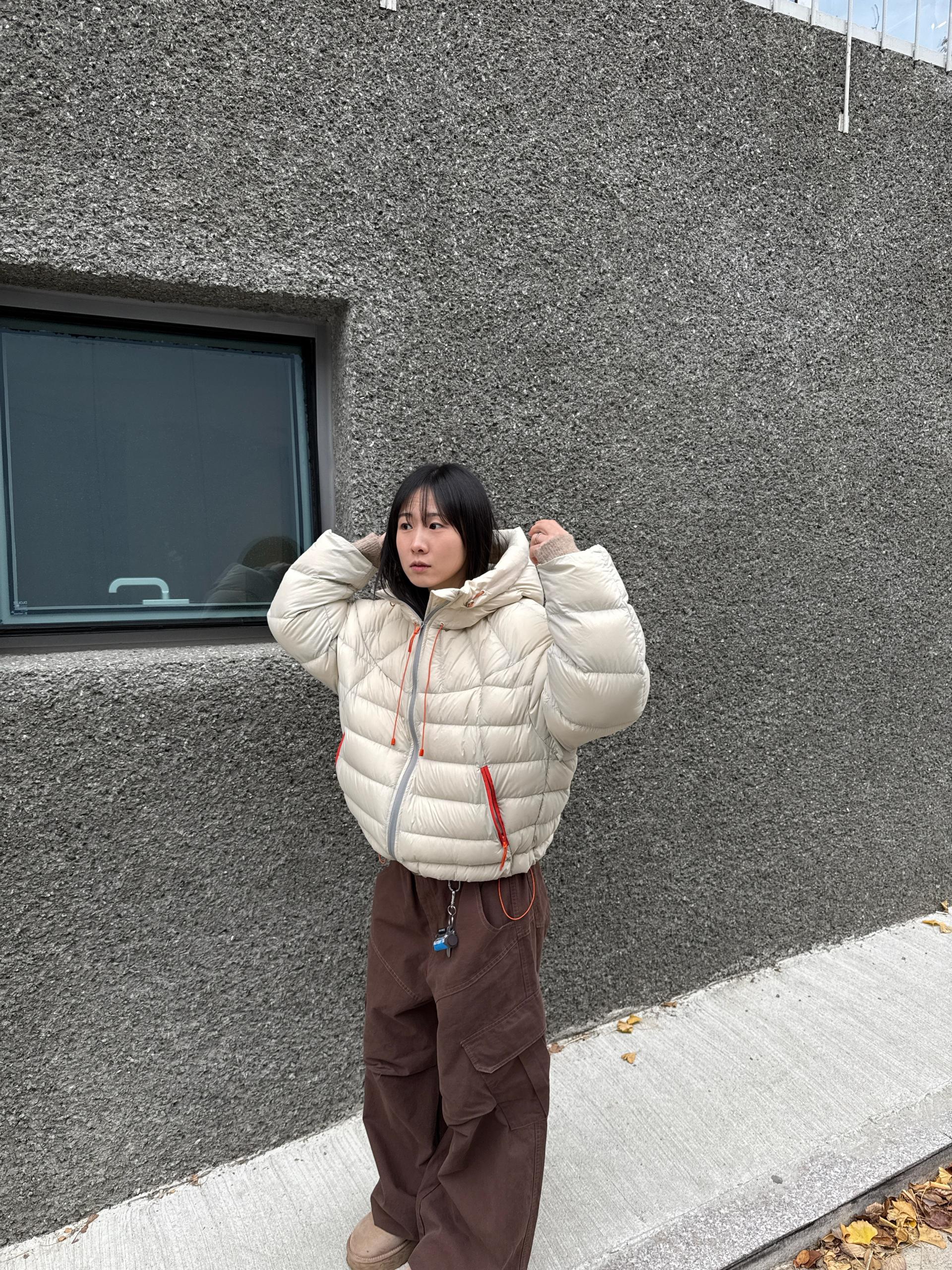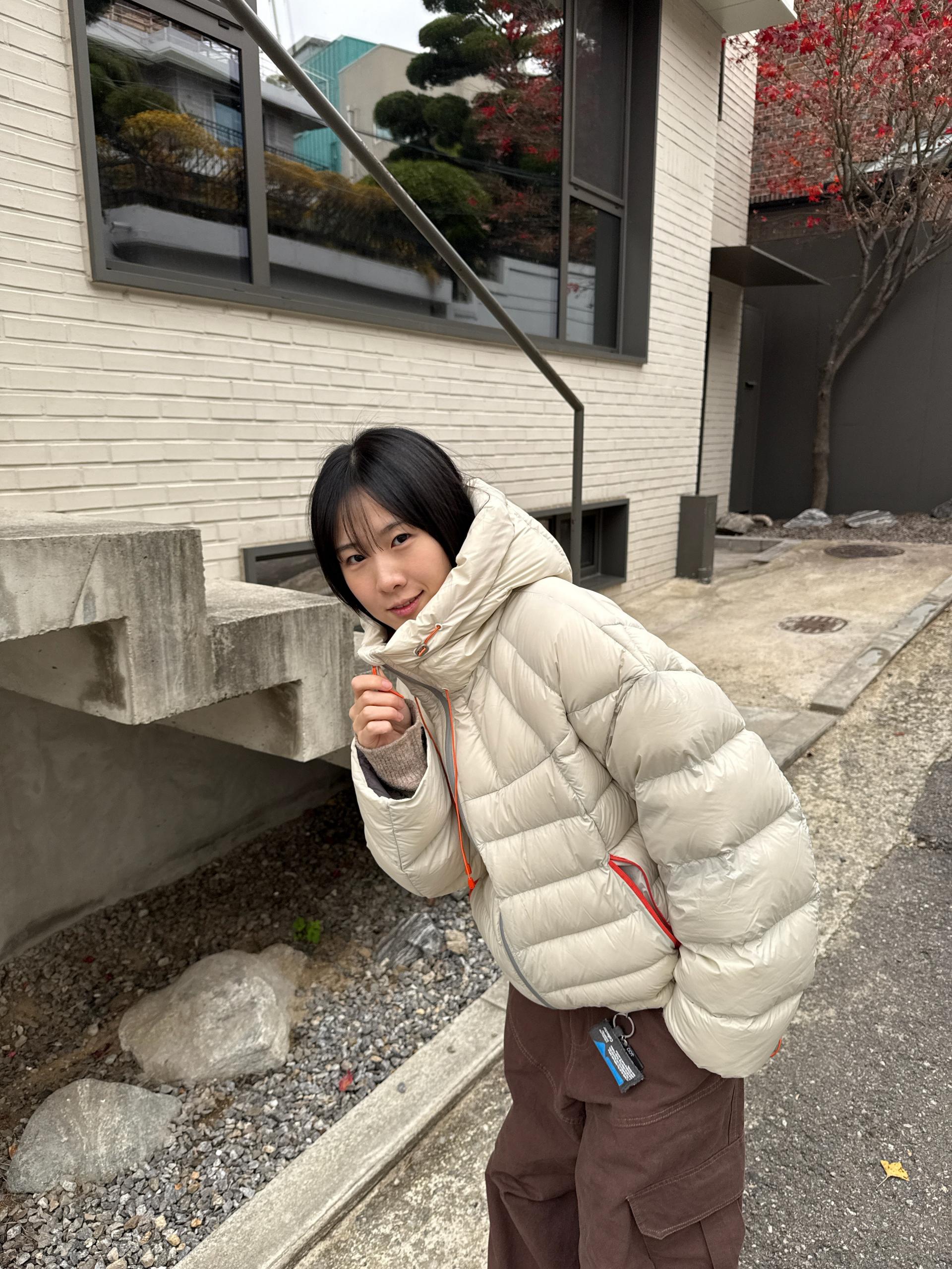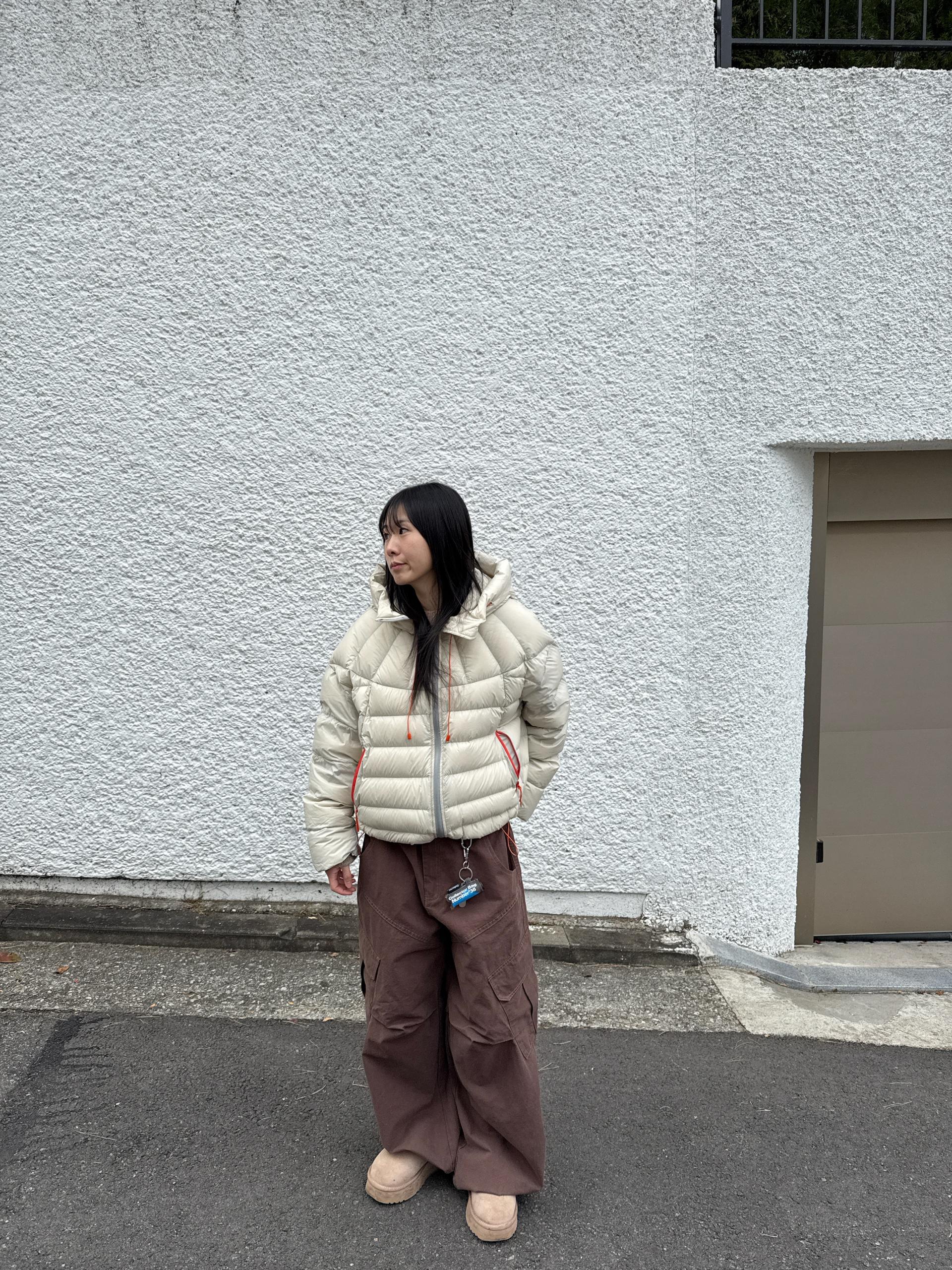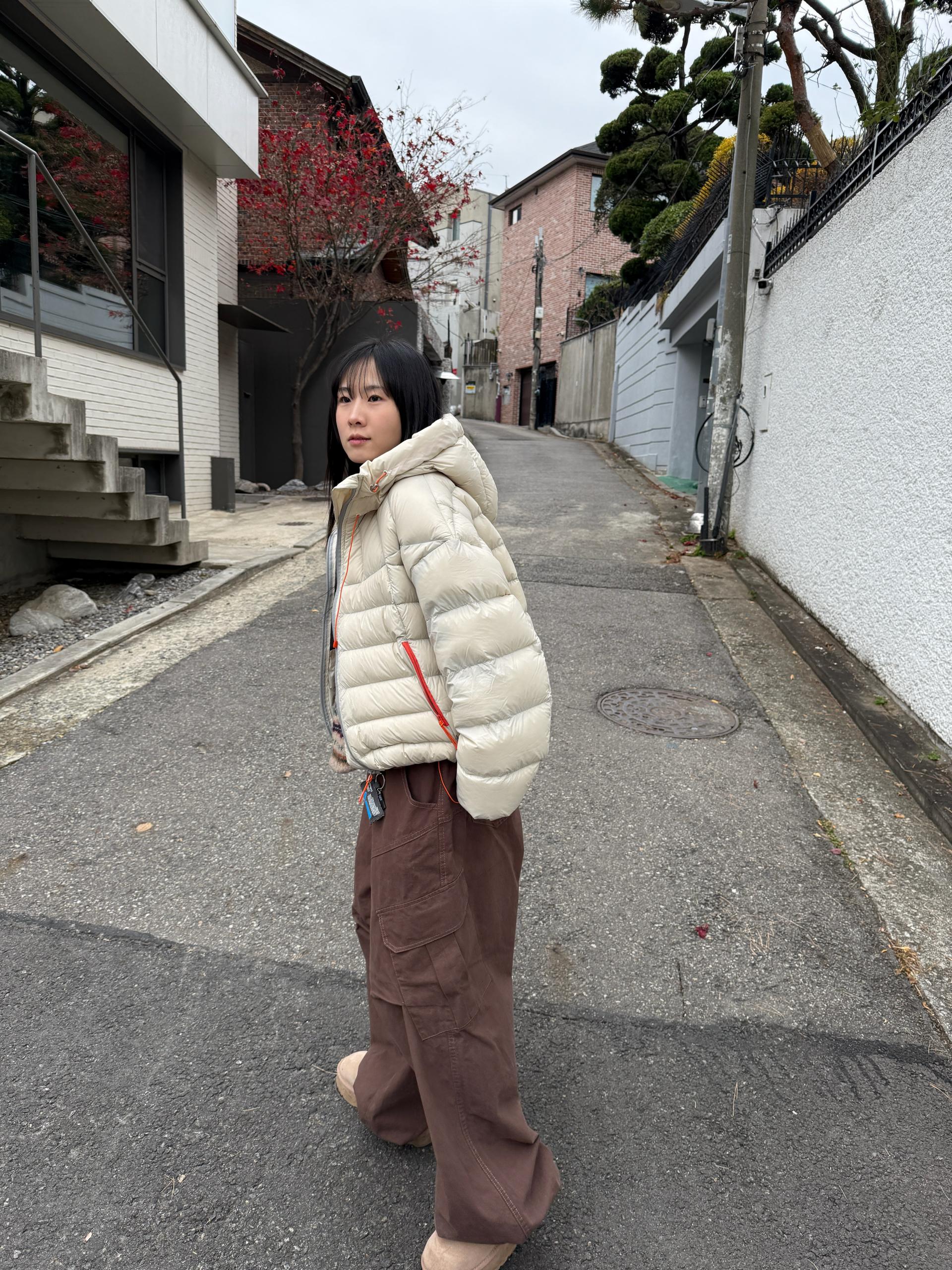 볼륨감 있게 올라오는 후드 실루엣이 매력적인 덕다운 패딩이에요!!