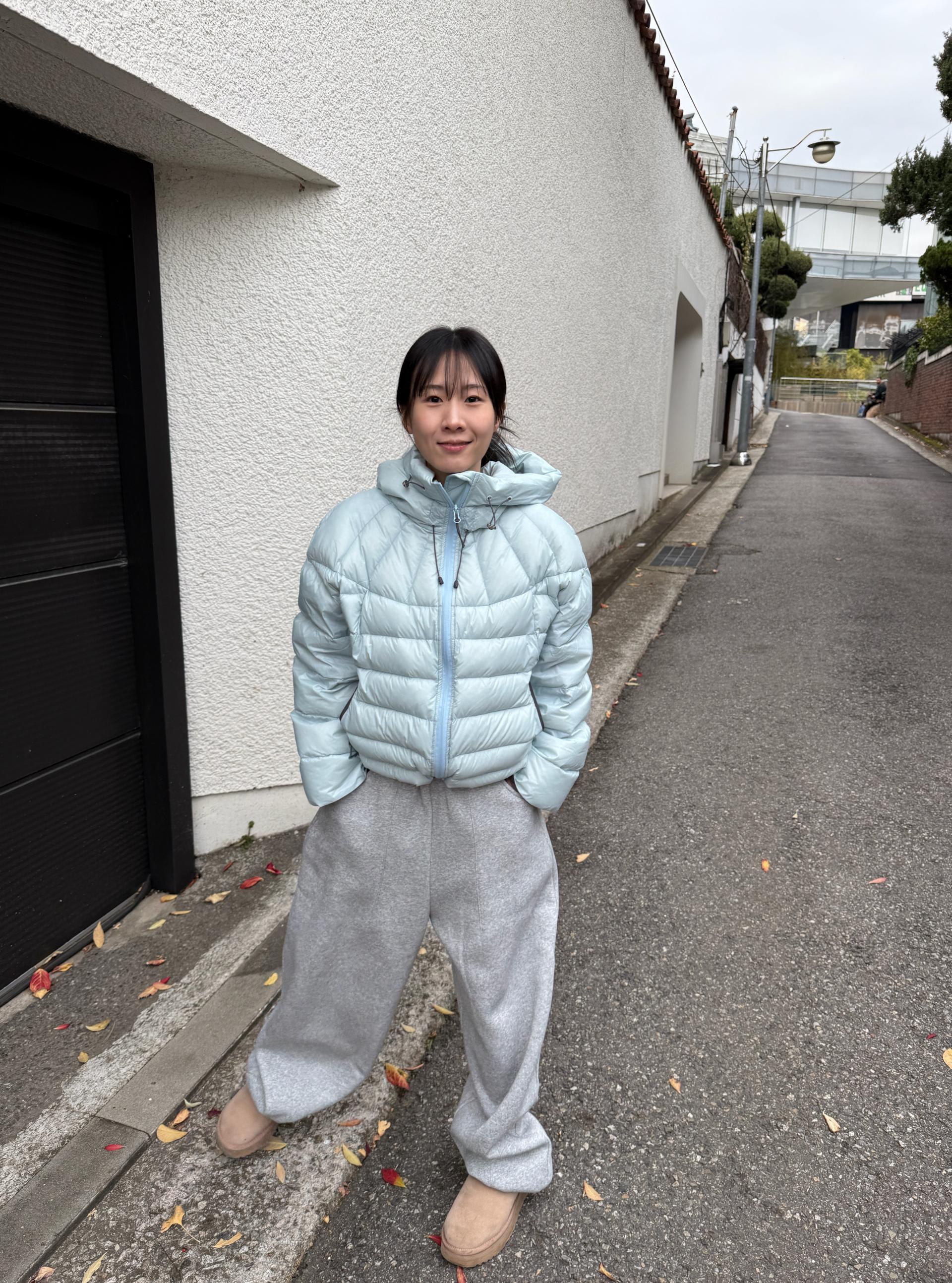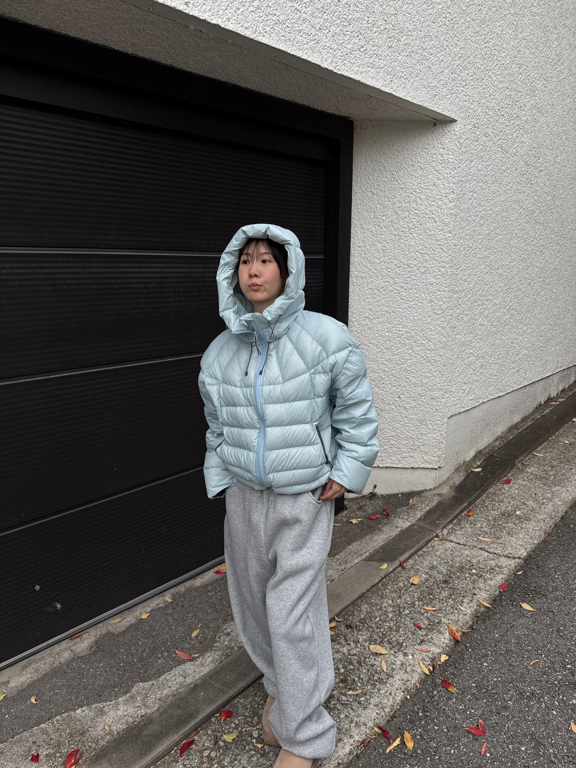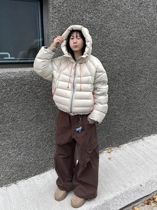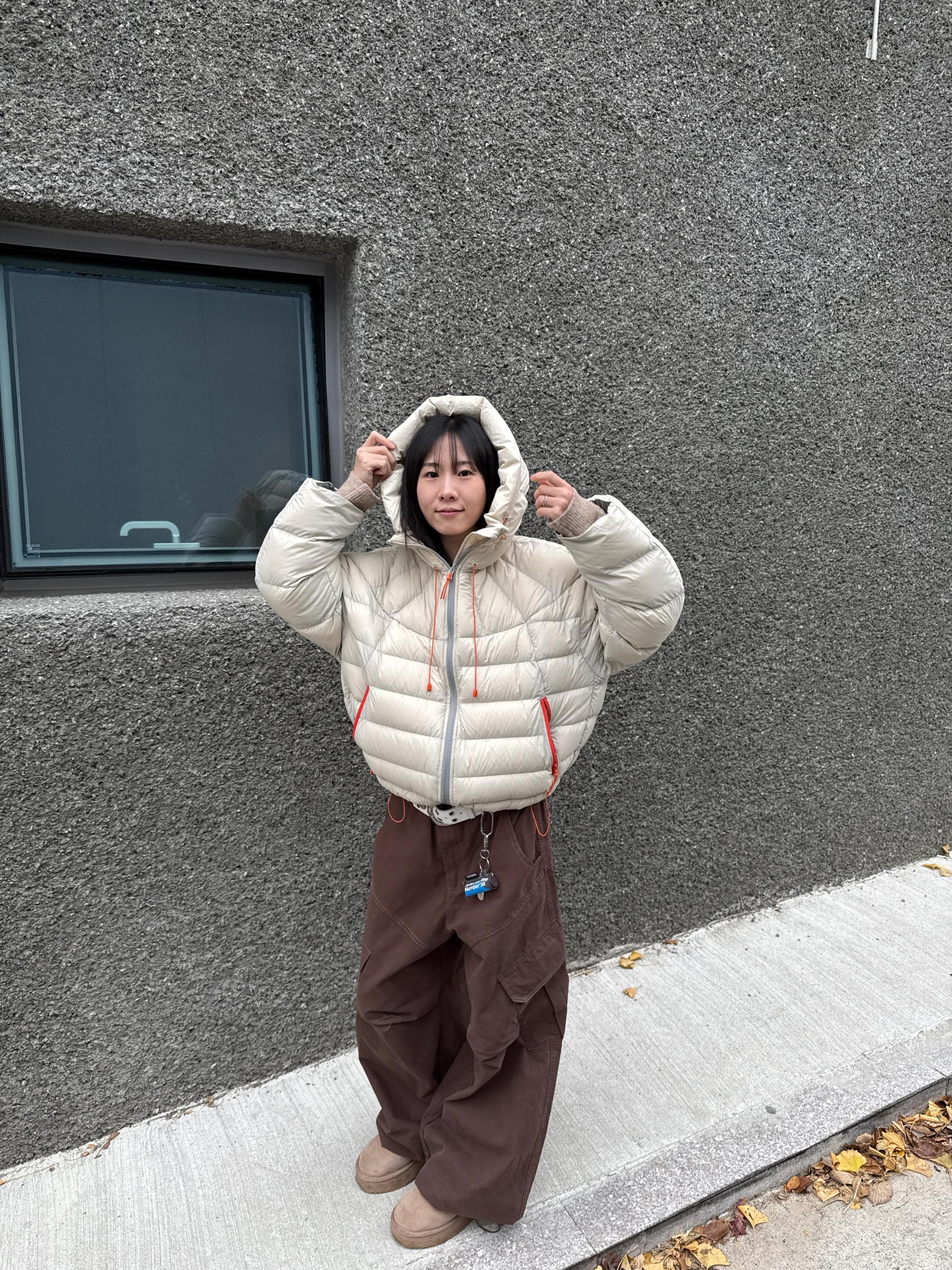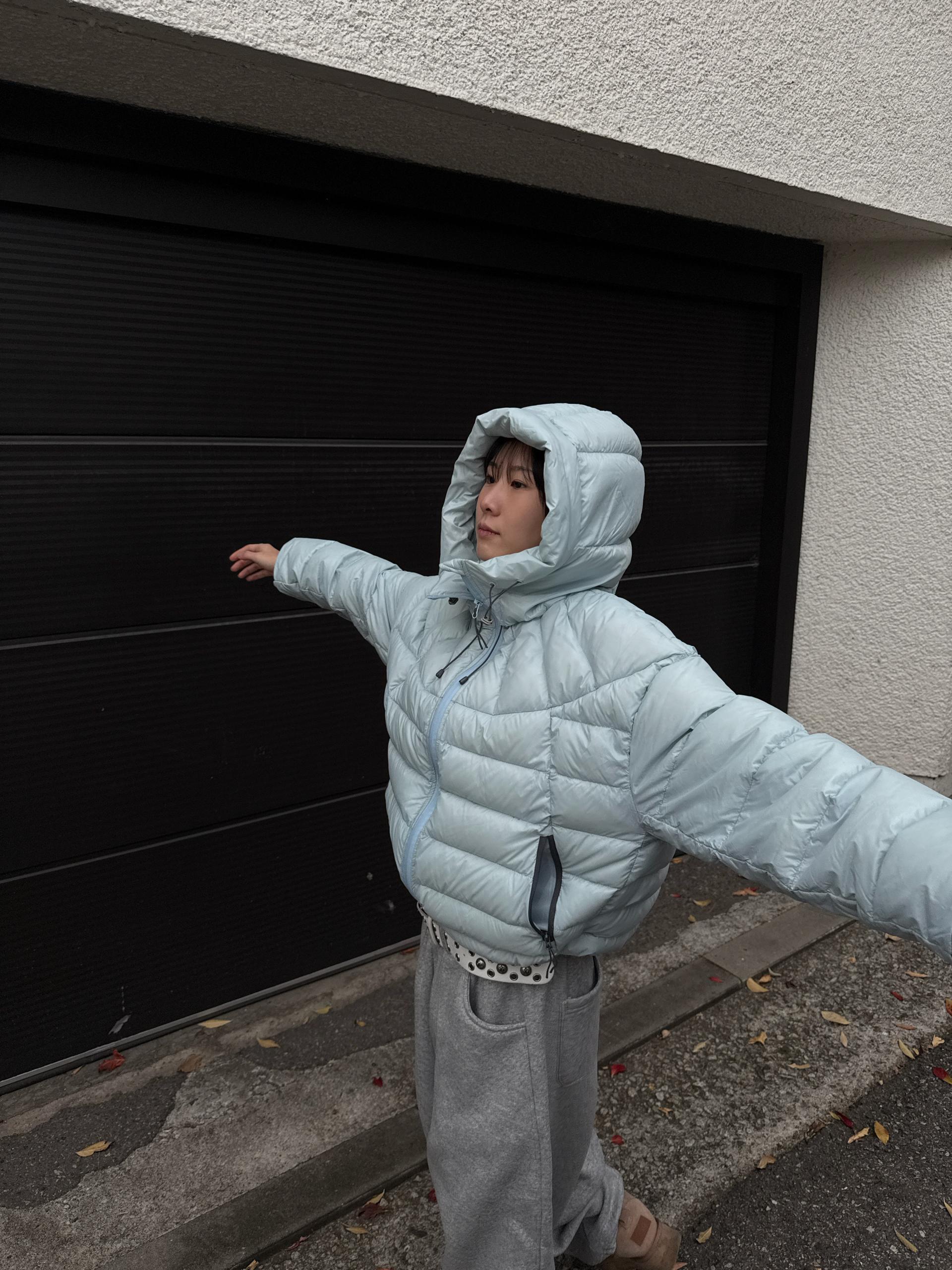 볼륨감 있게 올라오는 후드 실루엣이 매력적인 덕다운 패딩이에요!!