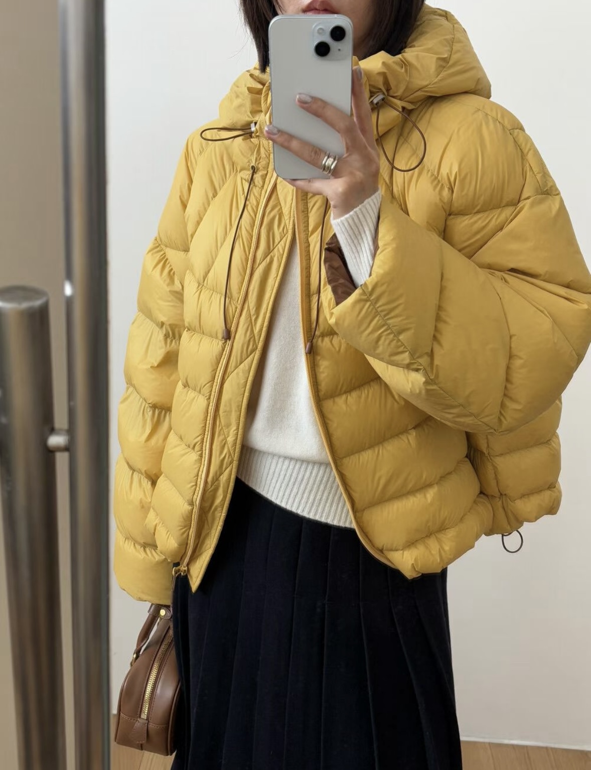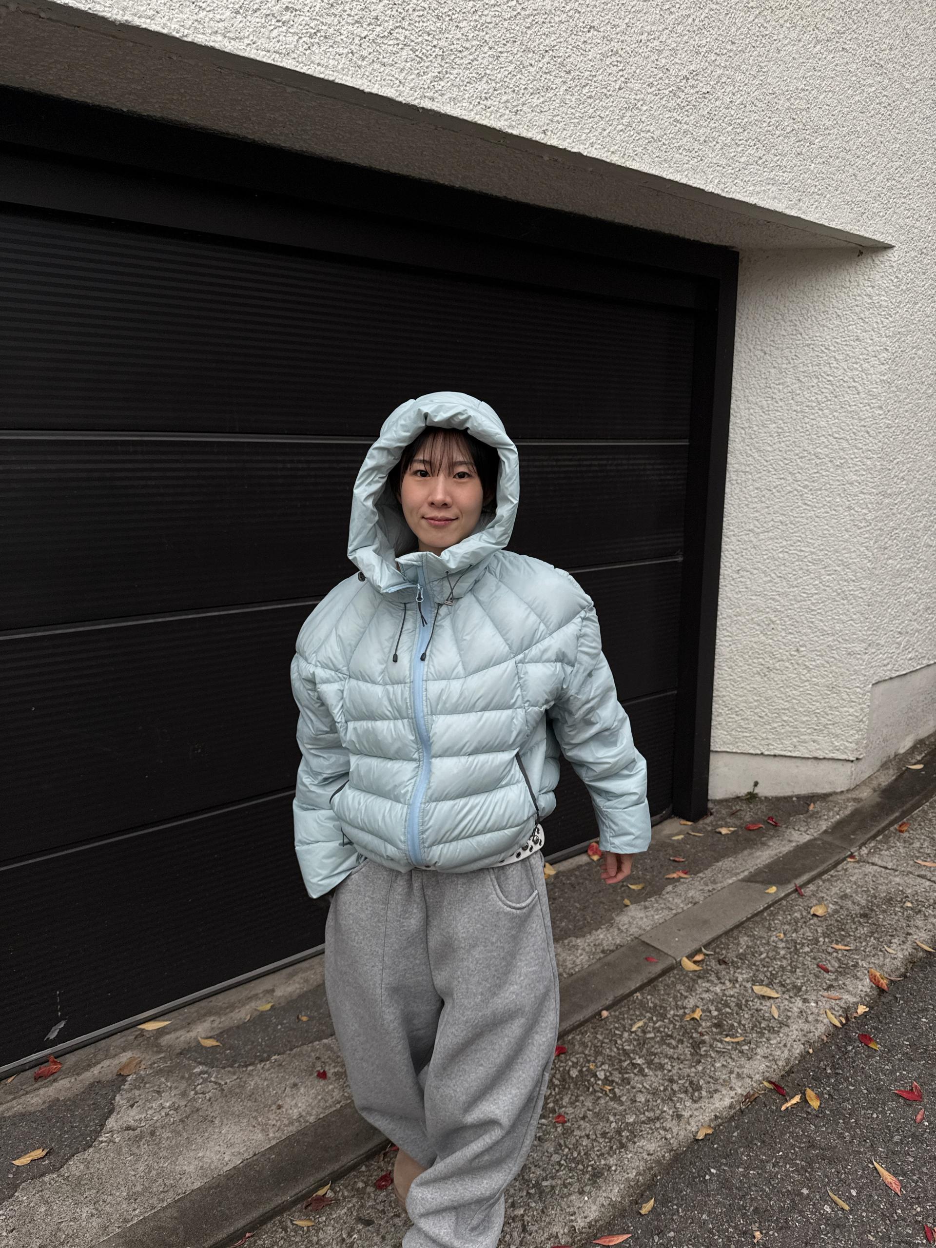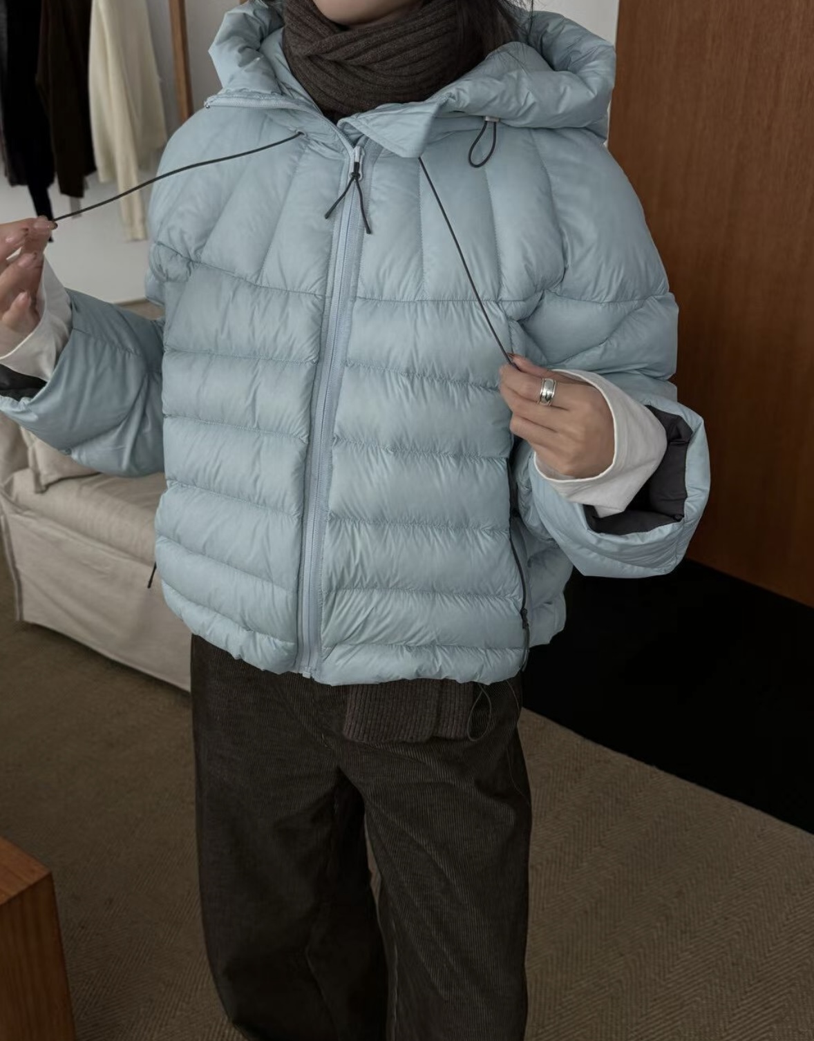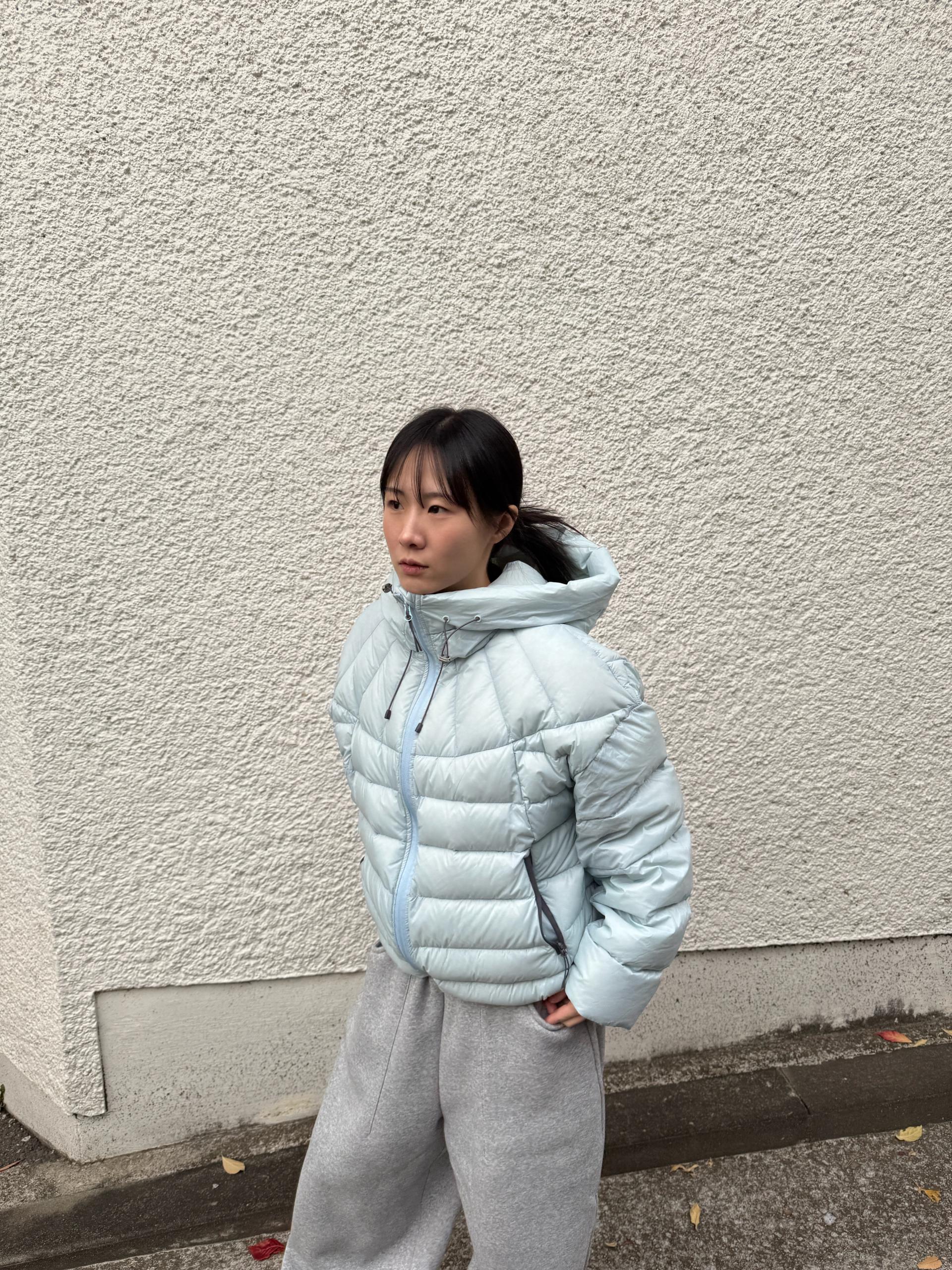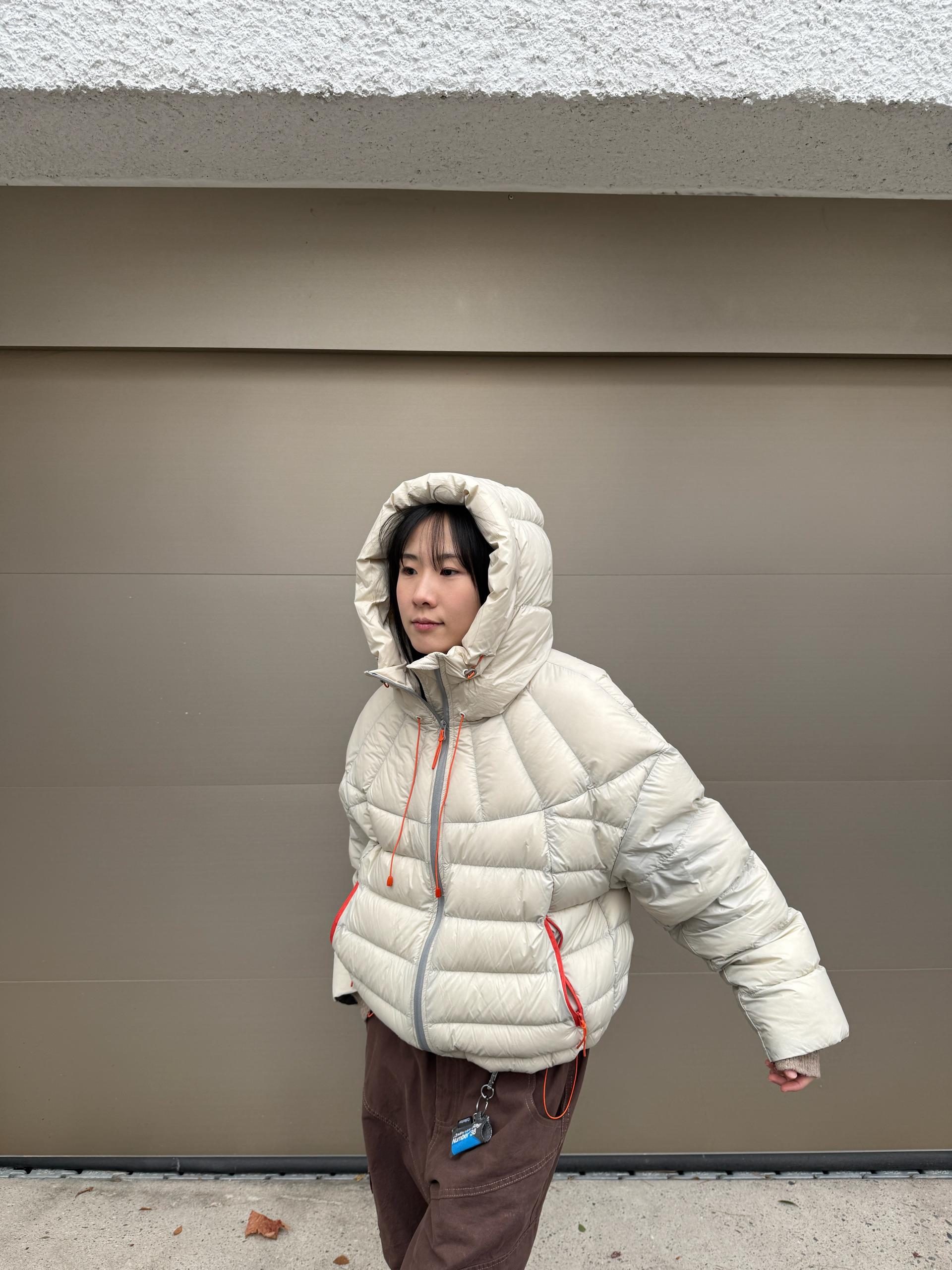 볼륨감 있게 올라오는 후드 실루엣이 매력적인 덕다운 패딩이에요!!