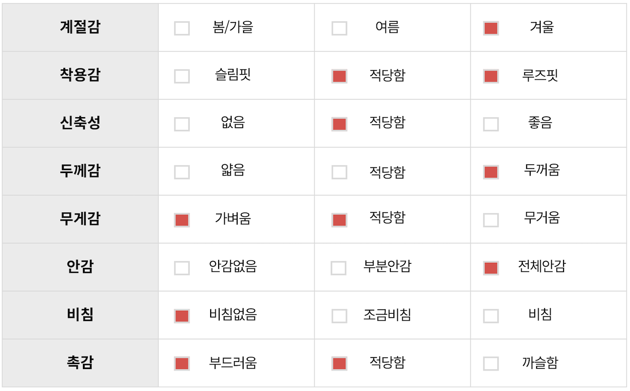 사이즈 정보